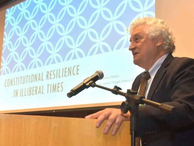 In a broad presentation on the Brazilian Constitution and the main political events since 1988, Professor Oscar Vilhena Vieira (Getúlio Vargas Foundation) recalled that two-thirds of the population of the world currently lives under authoritarian regimes or in deteriorating democracies, according to a report by the Institute for Democracy and Electoral Assistance.