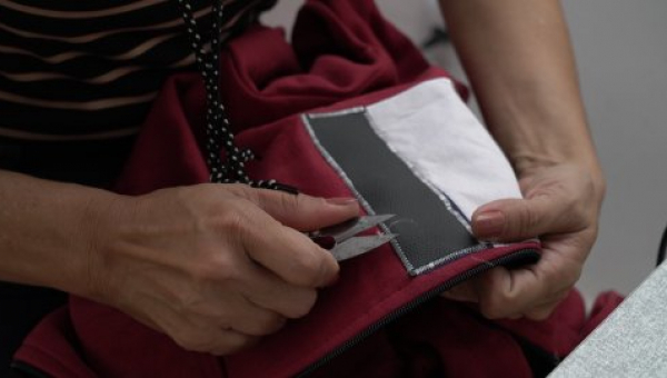 According to her, the whole process is done with care and dedication. "During production, we test the best point to be used. One makes the seam, another cuts the lines and folds, and the rest of the team confers the already customized pieces”.