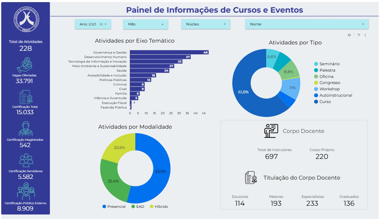 Over the course of 2025, Esmat carried out 228 activities, offered 33,791 vacancies and registered 15,033 certifications, contemplating face-to-face, EaD and hybrid actions. The figures show not only quantitative growth, but also institutional capacity for adaptation, expansion and delivery of concrete results.