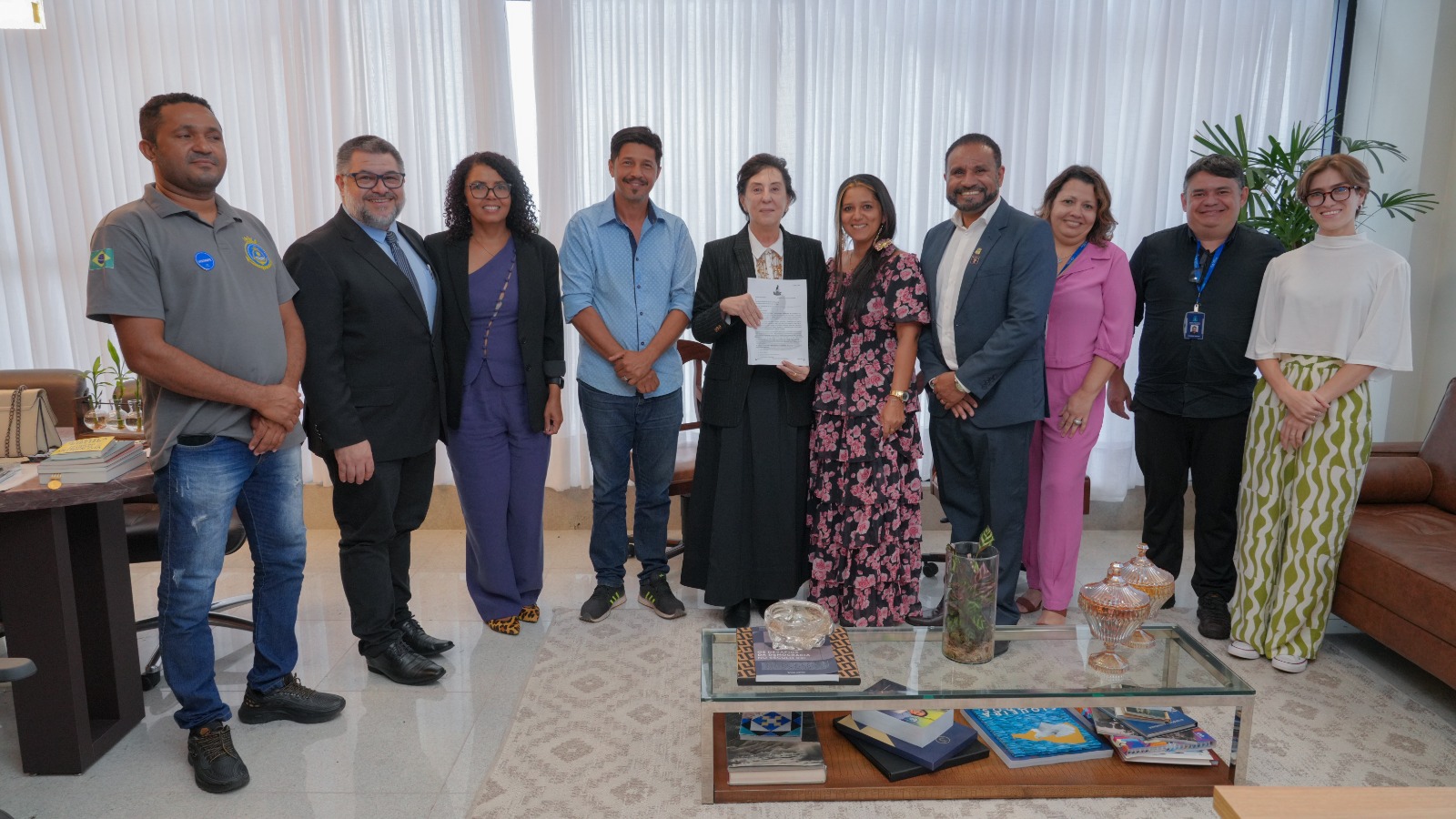 Representatives of the State Institute of Peoples and Traditional Communities of the state of Tocantins (INES-PCTS/TO) attended an institutional meeting with the president of the Management Commission for Policies of Equity on Gender, Race and Diversity of the Judiciary of the state of Tocantins, Justice Angela Issa Haonat, to present demands and proposals aimed at strengthening the guarantee of rights and expanding access to Justice for traditional peoples and communities in the State.