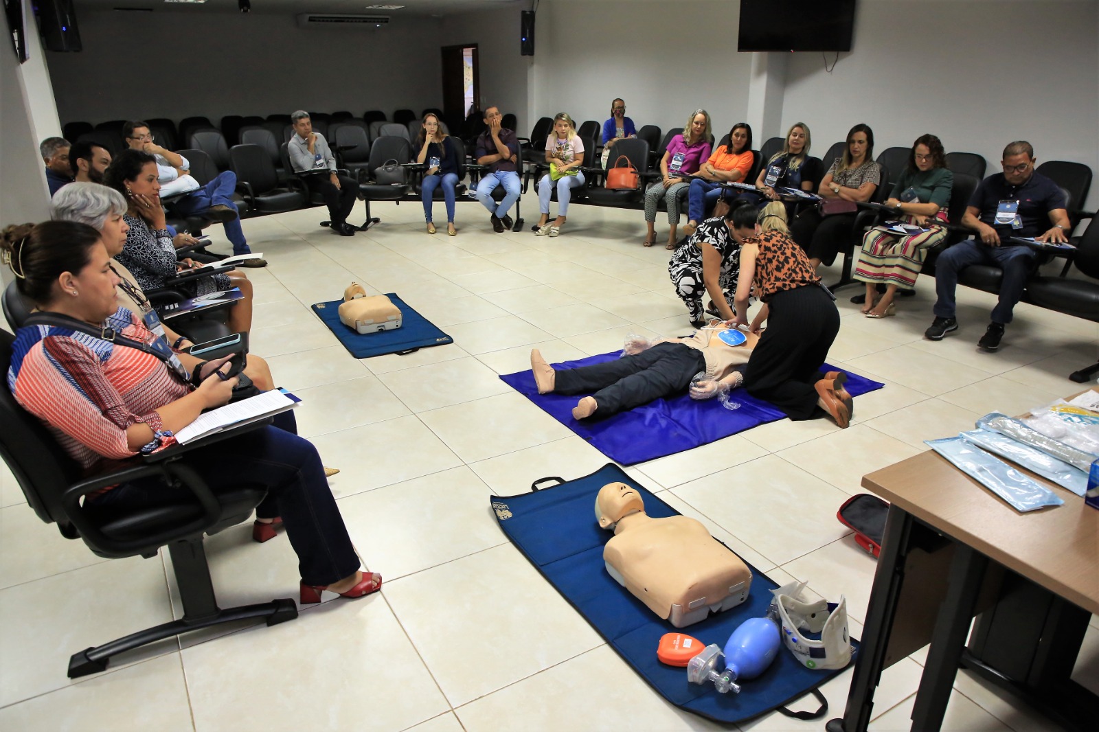 Held in person, the course has a workload of 4 hours and takes place at the Auditorium of Esmat. Aimed at the employees and magistrates of the Judiciary of the State of Tocantins, the training aims to provide essential knowledge to deal with medical emergencies.