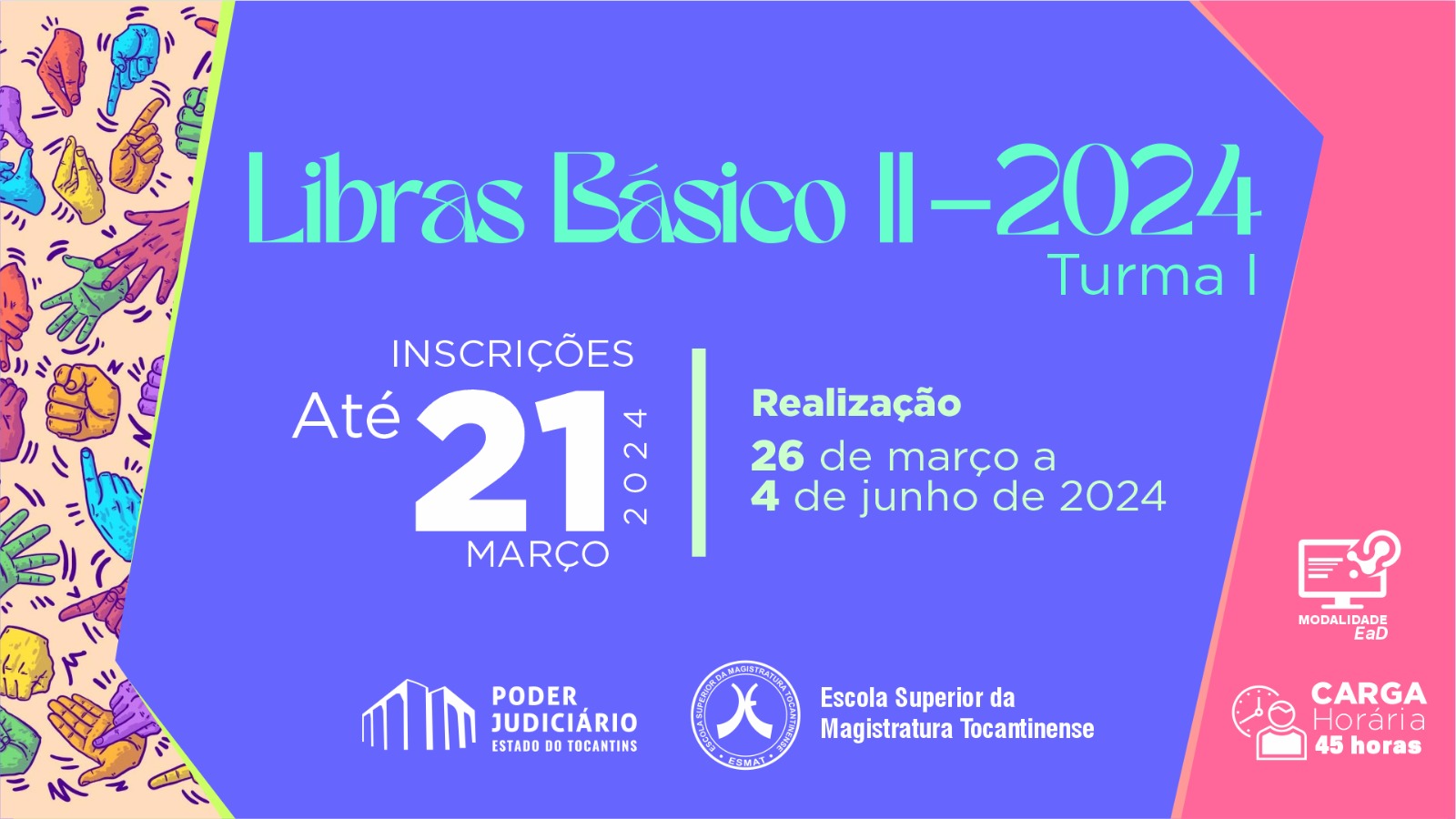 The Superior School of the Judges of the State of Tocantins (ESMAT), seeking to teach Libras to magistrates, civil servers and employees of the Judiciary, is opening registration for Basic Level II, which will take place until March 21st.