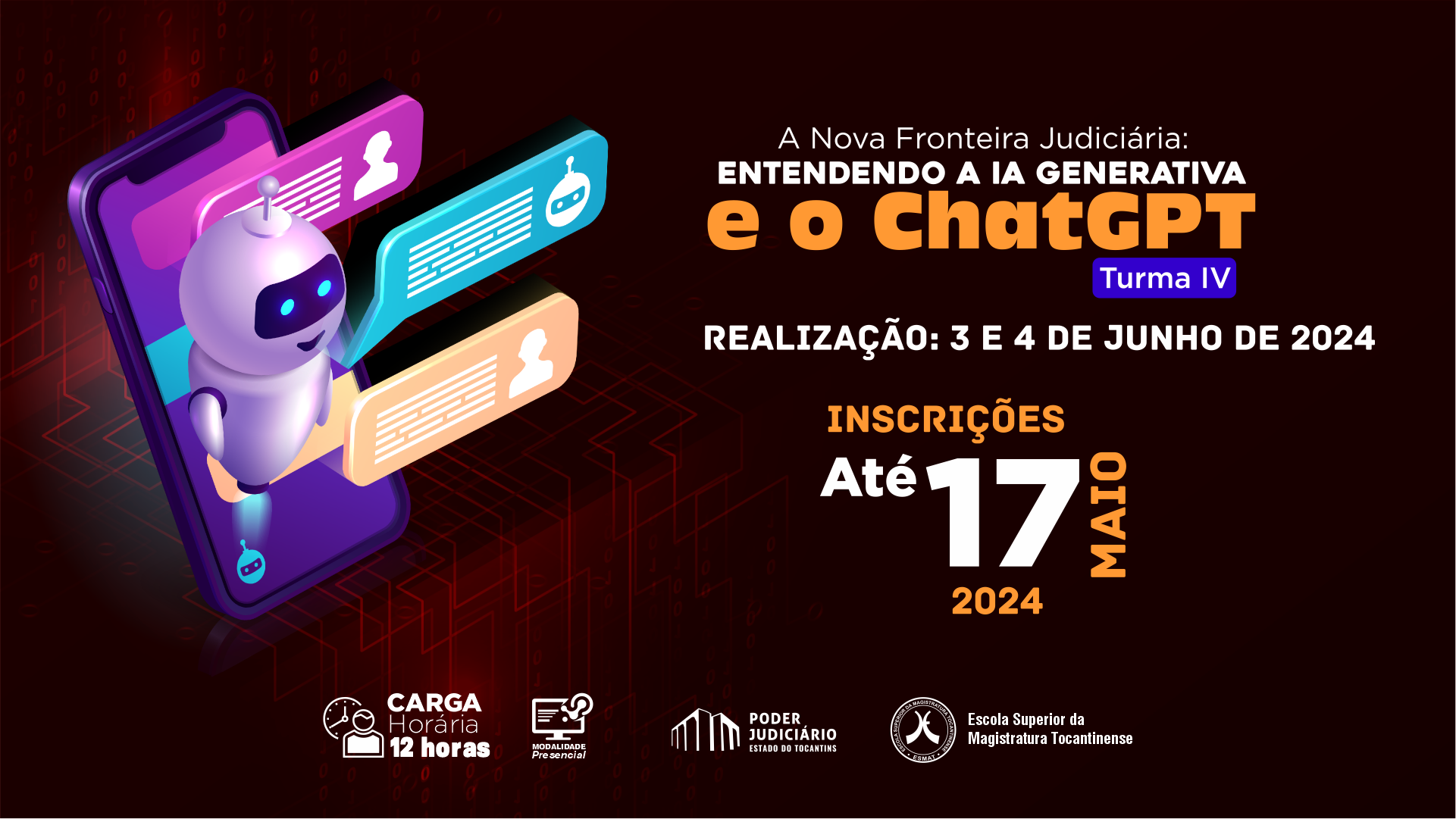 On June 3rd and 4th, the civil servers of the General Internal Affairs of Justice of the State of Tocantins will take part in the course on "The New Judicial Frontier: Understanding Generative AI and ChatGPT". The course aims to train participants in the concepts, applications, limitations and ethical and practical implications of using Generative Artificial Intelligence, especially ChatGPT, in order to support judicial activities and promote innovation and efficiency in the Brazilian Judiciary.