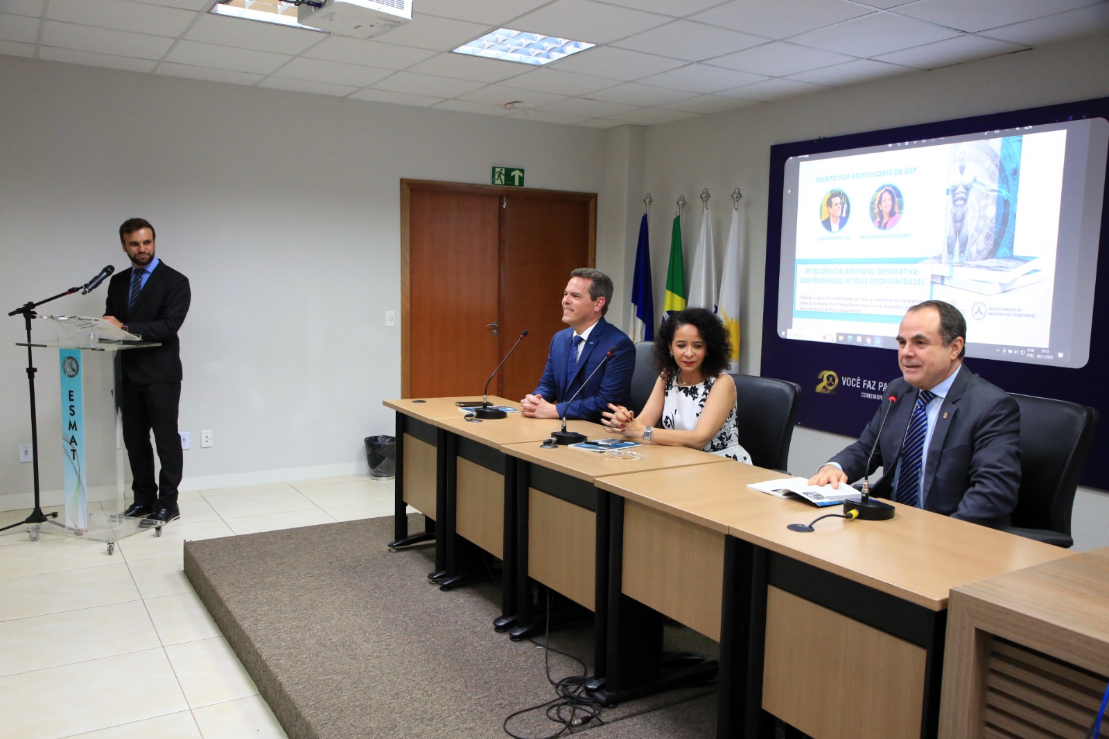 The book, written by the USP Professors Luciano Araújo and Ana Carla Bliacheriene, explores and contextualizes structuring concepts for an enterprising and innovative understanding of the Generative Artificial Intelligence. During the meeting, Justice Marco Villas Boas, General Director of Esmat, who wrote the foreword book, highlighted the impact of the theme and, consequently, of the work, on the Brazilian judiciary.
