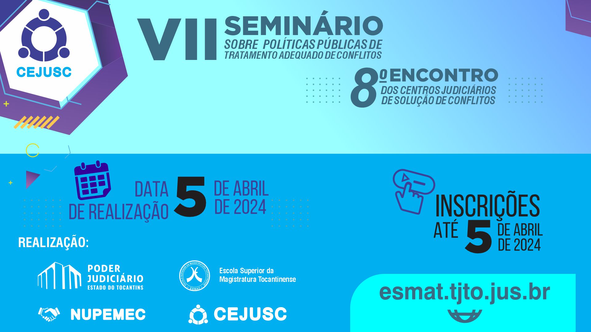 Registrations are now open for the VII Seminar on Public Policies for the Adequate Treatment of Conflicts and the VIII Meeting of the Judicial Centers for Conflict Resolution (Cejuscs). Organized by the Permanent Center for Consensual Methods of Conflict Resolution (Nupemec) in partnership with the Superior School of the Judges of the State of (ESMAT), the event will take place on April 5th, starting at 8am, in the auditorium of the Court of Justice.