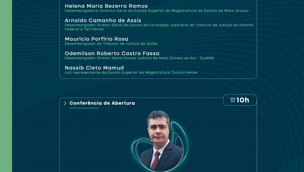 The event is an initiative of the Superior School of the Judges of the State of Tocantins (Esmagis-MT), in partnership with the Judicial School of the State of Mato Grosso do Sul (EjudMS), the Judicial Training School of the Court of Justice of the Federal District and Territorries (EjuDFT), the Superior School of the Judges of the State of Goiás (EJUG) and the Superior School of the Judges of the State of Tocantins (Esmat).