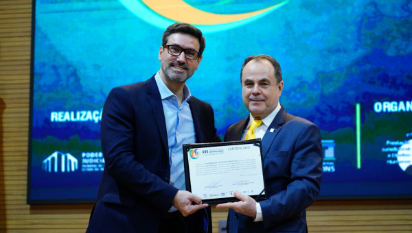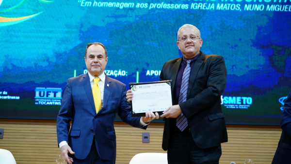 At the end of the panel, Dr. Mohamed Jaouhar was honored with the ESMAT Medallion, in recognition of his collaboration with the activities of the school and the enhancement of the Judiciary of the State of Tocantins. The tribute was presented by Justice Marco Villas Boas, the General Director of the school.