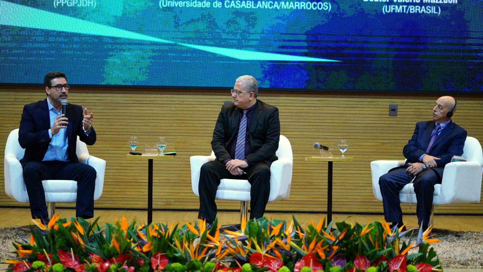The panel on the challenges and progress of human rights protection systems in America and Africa closed the programming of the second day of the XVII International Congress on Human Rights - The State of Unconstitutional Things, on Thursday (October 3rd). The topic was addressed by Dr. Mohamed Jaouhar, from the University of Casablanca/Morocco, and Dr. Valério Mazzuoli, from the Federal University of the State of Mato Grosso/Brazil, and it was moderated by Dr. Tarsis Barreto Oliveira (PPGPJDH).