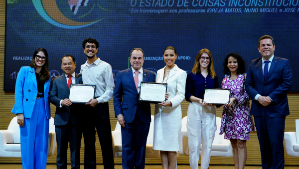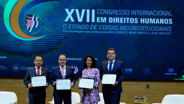 At the end of the presentations, the lecturers were honored in recognition of their contributions on improving the justice system. The tribute was presented by Justice Marco Villas Boas.