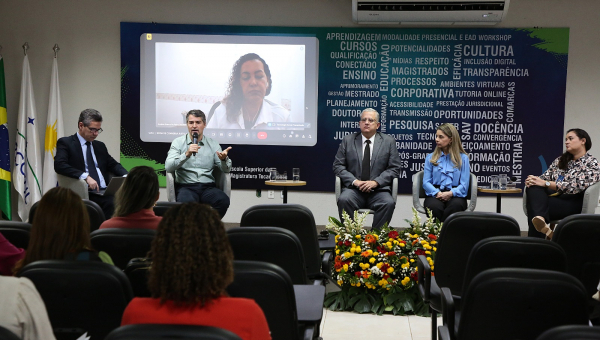The event was attended by the speaker, the head Judge of the Special Court for Children and Youth of the city of Palmas Adriano Gomes de Melo Oliveira, the Prosecutor Sidney Fiori Júnior and the debaters Professor Tarsis Barreto Oliveira, coordinator of the Master's and Doctorate Program in Judicial Provision and Human Rights (UFT and Esmat); Elisa Maria Pinto de Souza Falcão Queiroz, Public Defender and coordinator of Nudeca; Rita di Cássia Bartok, Pedagogue responsible for the project to implement the Special Testimony at the TJTO; and Andréa França de Paiva, Social Worker from the Itinerant Welcoming Testimony team at the TJPE.