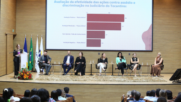 After the speeches, Maria Clara Rezende, secretary of the Commission, presented the report of the institutional survey carried out in April this year. The survey gathered the perceptions of magistrates and civil servers about harassment and discrimination in the workplace, providing relevant data for improving internal policies and strengthening the culture of respect in the Judiciary of the state of Tocantins.