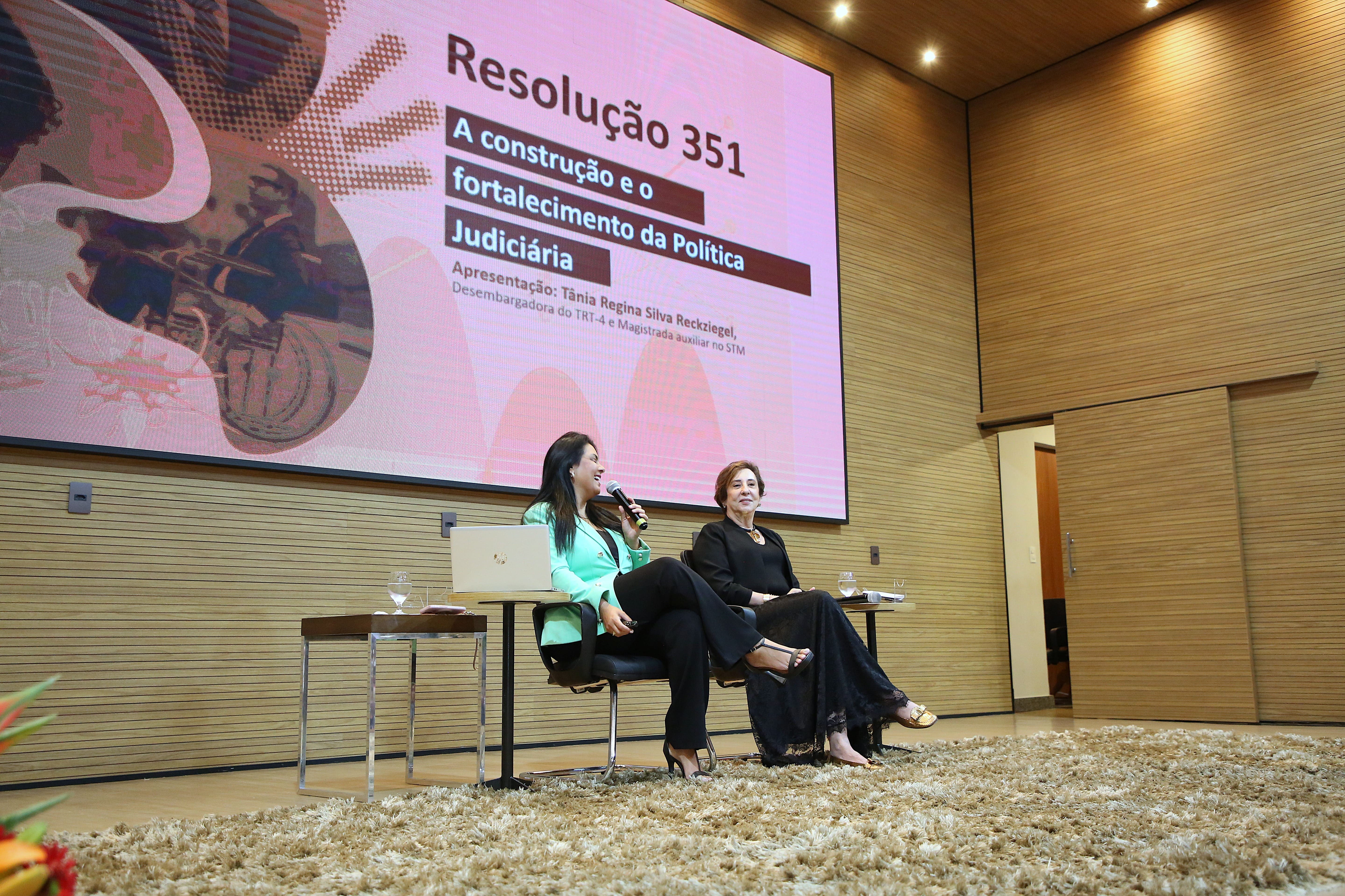 The evening programming continued with the lecture on “Moral and Sexual Harassment and Discrimination”, given by Justice Tânia Regina Silva Reckziegel, president of the College of Judicial Ombudsmen for Women and the first national Ombudsman for Women at the National Council of Justice (CNJ).