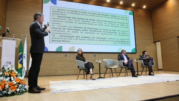 The prosecutor Sidney Fiore Júnior, from the Center for Operational Support of Childhood, Youth and Education (CAOPIJE/MPTO), presented legislation that protects the right to mental health of adolescents in compliance with socio-educational measures. He highlighted the National Policy of Comprehensive Health Care for Adolescents in Conflict with the Law (PNAISARI), established by the Ordinance nº 1.932 of 2024. "Deprivation of liberty cannot mean deprivation of health," he emphasized.