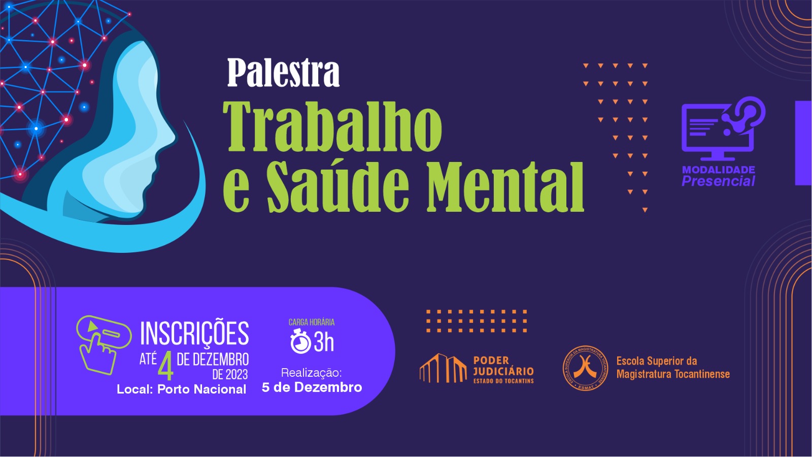 Magistrates and civil servers of the Judiciary, duly assigned to the District of Porto Nacional, who are interested in taking part in the lecture "Work and Mental Health", which will be held on November 5th, can register. clicking here.