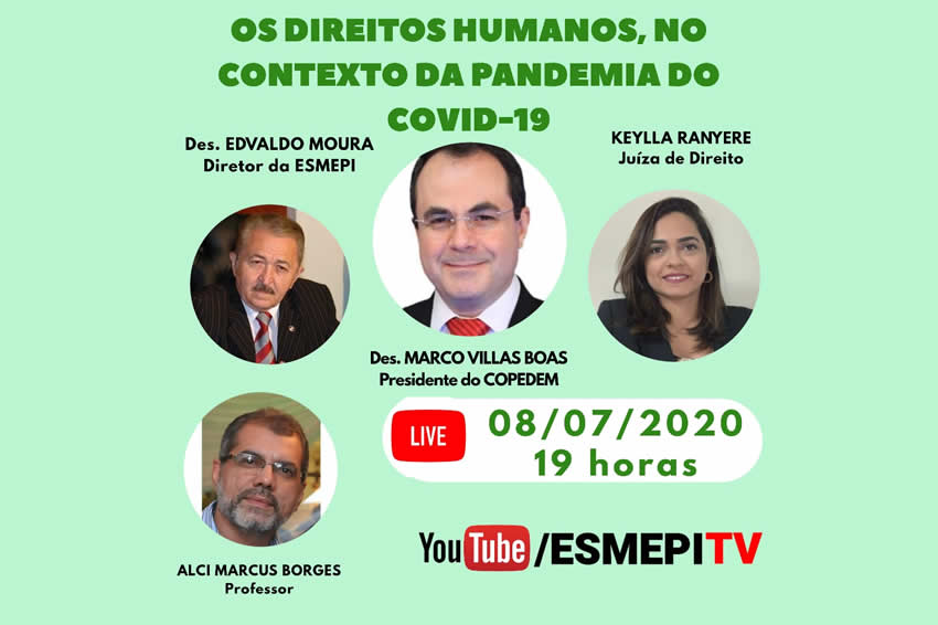 Com a proposta de dar continuidade às discussões acerca da pandemia global Covid-19, o presidente do Colégio Permanente de Diretores de Escolas da Magistratura (COPEDEM), desembargador Marco Villas Boas, participa, nesta quarta-feira (8), a partir das 19 horas, de uma live intitulada Os Direitos Humanos no Contexto da Pandemia Covid-19, promovido pela Escola Superior da Magistratura do Piauí (ESMEPI), a qual será transmitida pelo canal da entidade no Youtube.