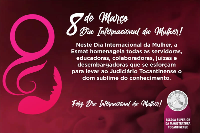Neste dia Internacional da Mulher, a Esmat homenageia todas as servidoras, educadoras, colaboradoras, juízas e desembargadoras que se esforçam para levar o judiciário Tocantinense o dom sublime do conhecimento.