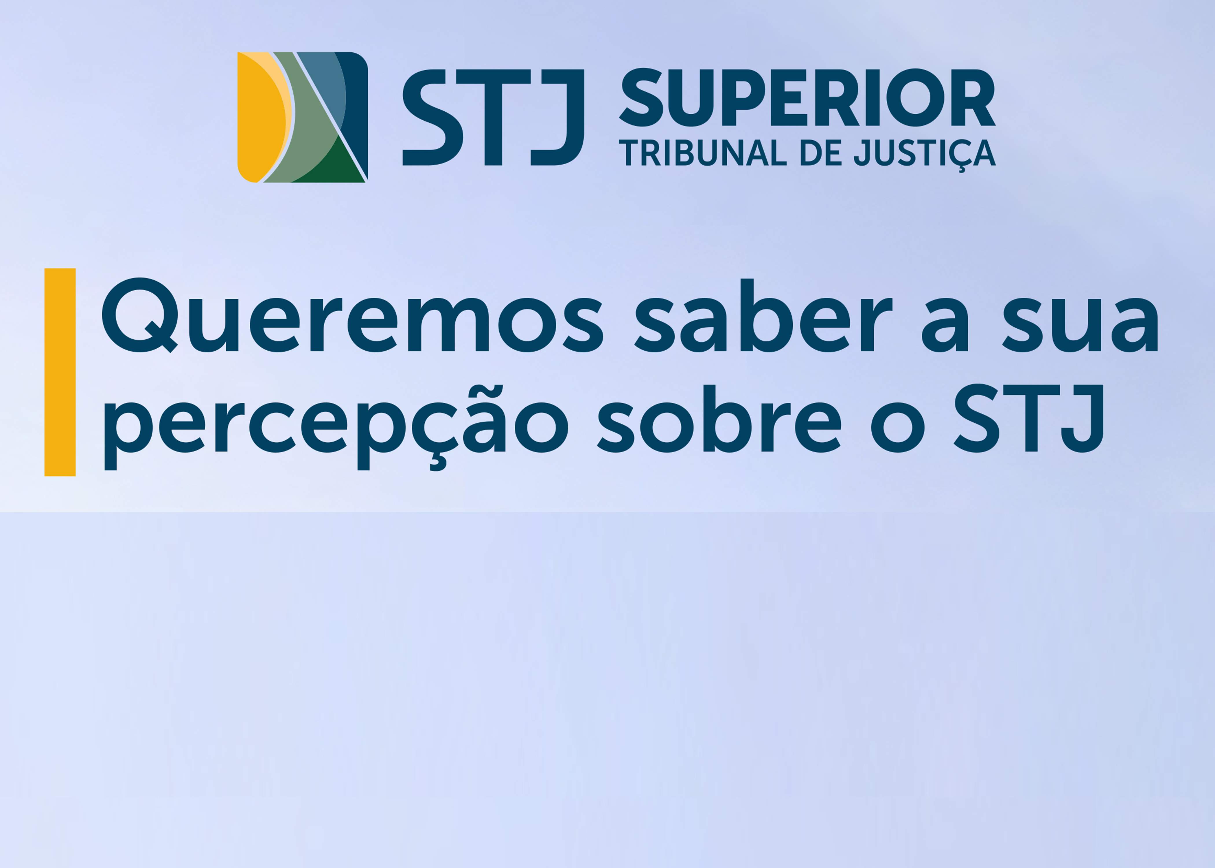 Servidores(as) e magistrados(as) do Tribunal de Justiça do Estado do Tocantins estão convidados(as) a participar da “Pesquisa de Imagem” realizada pelo Superior Tribunal de Justiça (STJ), cujo objetivo é medir a percepção da população quanto ao cumprimento de sua missão, alinhada aos seus valores e à sua visão.
