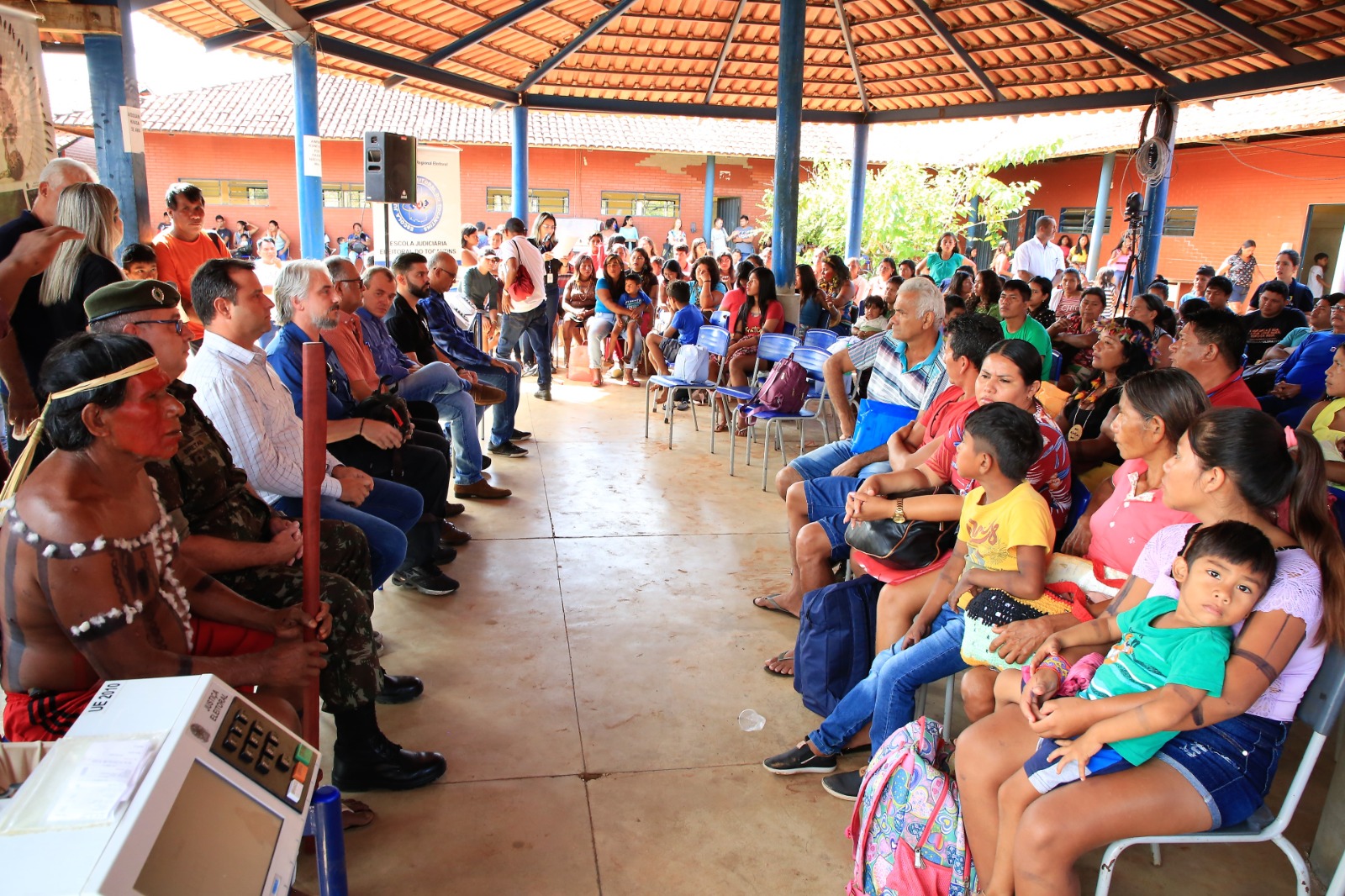 Em comemoração do Dia dos Povos Indígenas, celebrado nesta data 19 de abril, o Poder Judiciário Tocantinense,  por meio da Escola Superior da Magistratura Tocantinense (ESMAT), participou das atividades do Programa de Inclusão Sociopolítica dos Povos Indígenas, realizado no Centro de Ensino Médio Indígena Xerente, município de Tocantínia, cerca de 70 quilômetros de Palmas. Participaram da atividade aproximadamente 400 integrantes dos povos Xerente.