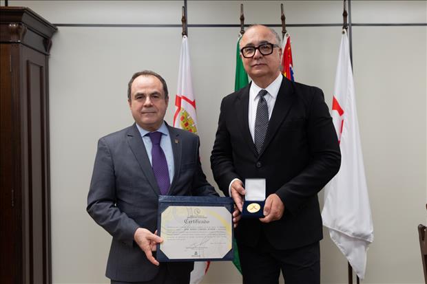 Na oportunidade, o desembargador Marco Villas Boas condecorou o diretor da EPM com o Medalhão da Esmat. A medalha é outorgada pelo Conselho Institucional e Acadêmico da Esmat para homenagear personalidades pela contribuição para a construção do conhecimento, incentivo às boas práticas e dedicação acadêmica e profissional voltada à pesquisa e ao aprimoramento da prestação jurisdicional.