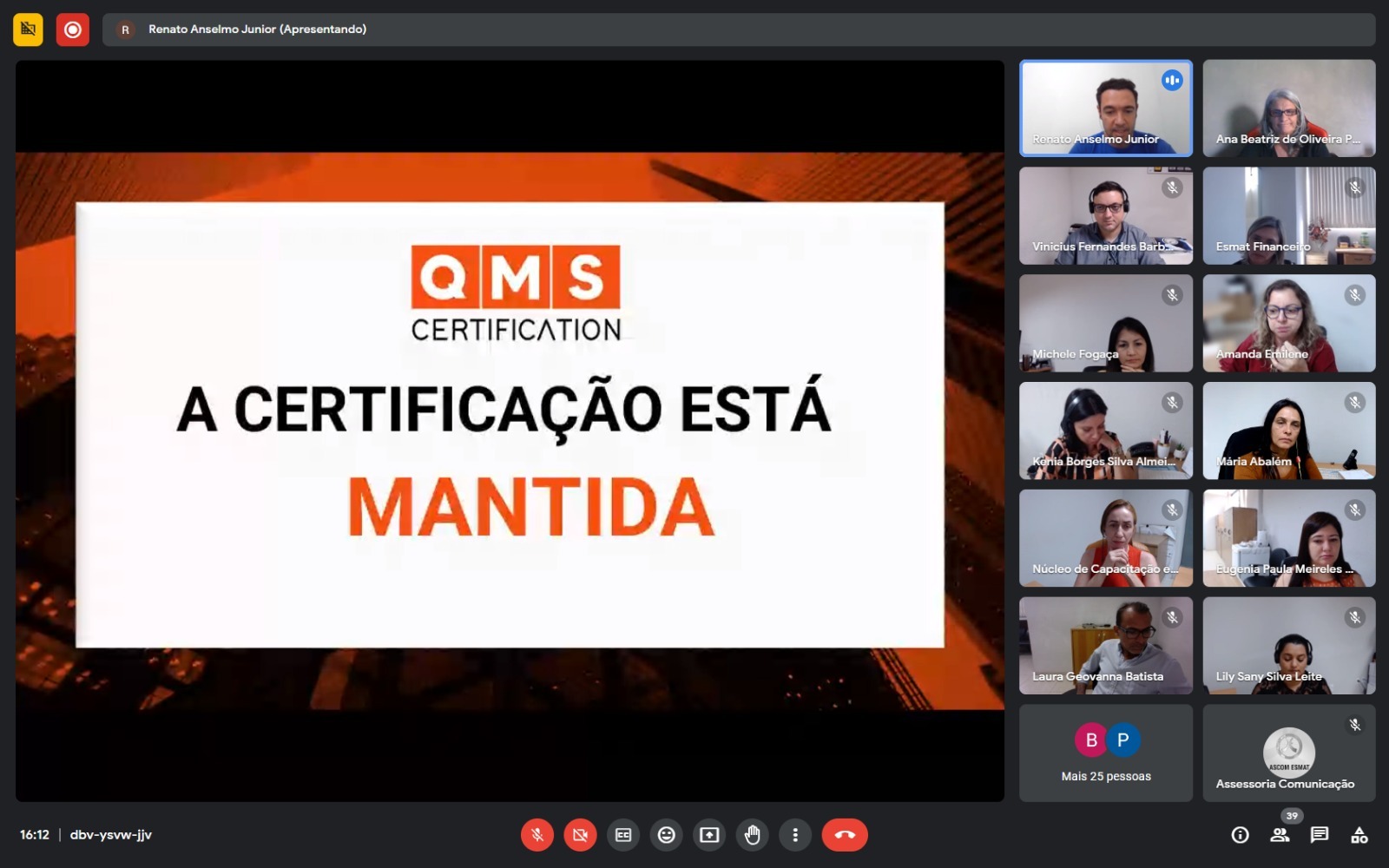 Certificação ISO 9001:2015 da Esmat é mantida após auditoria pela QMS
