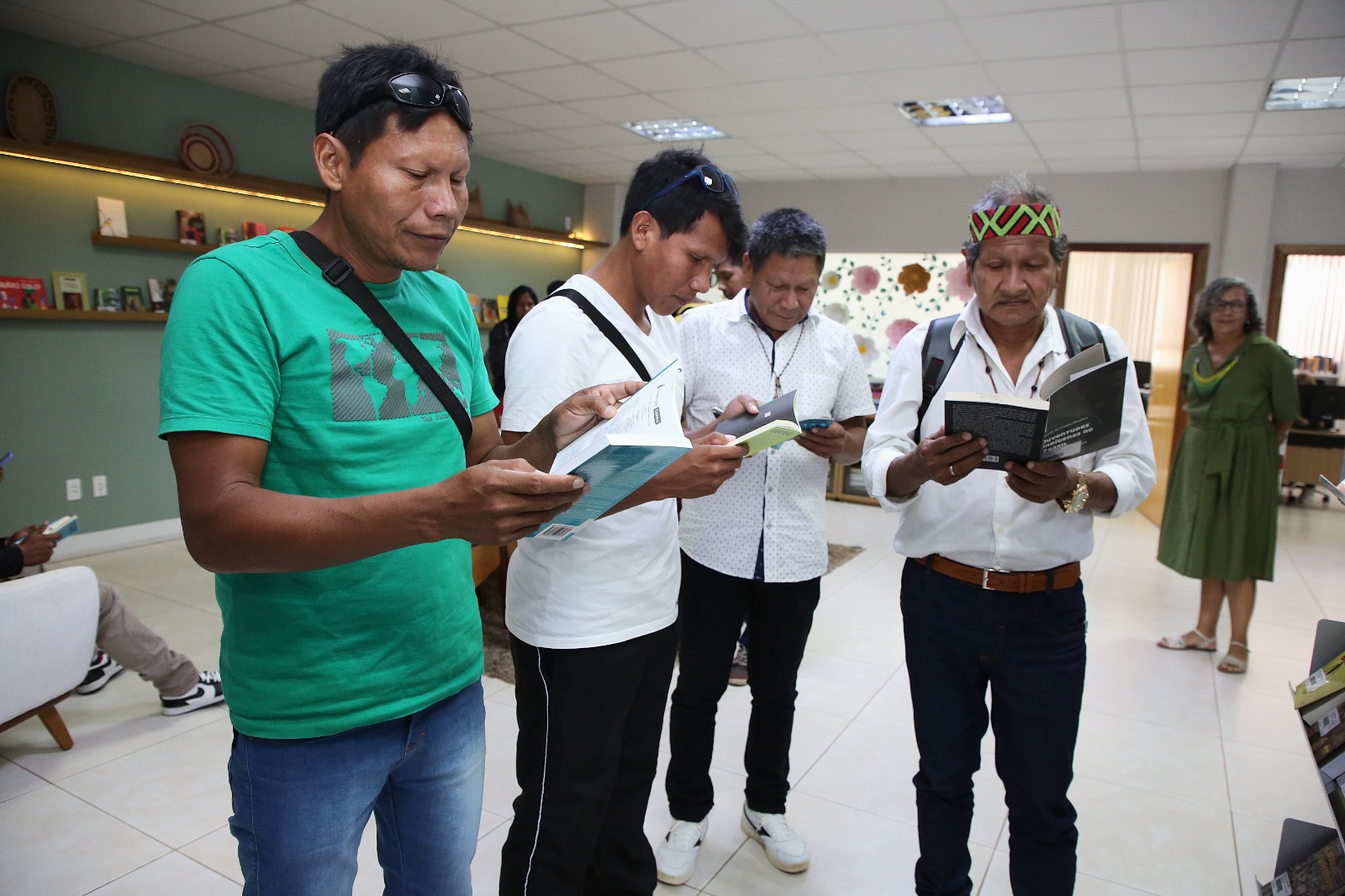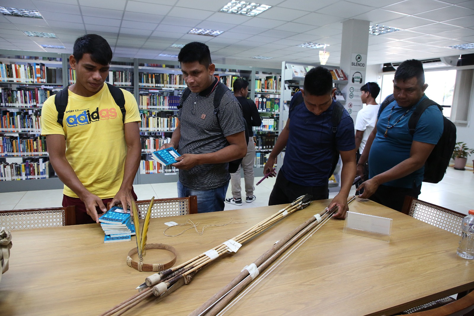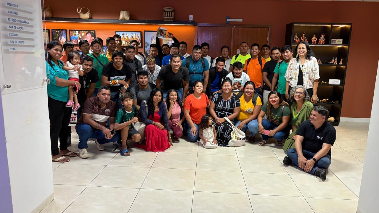 Durante a visita, os(as) alunos(as) conheceram a infraestrutura da Esmat, incluindo a biblioteca, salas de estudo, estúdio de gravação, laboratórios de informática e demais setores. Além disso, puderam apreciar a exposição do Projeto Espaço de Artes e Artesanato Indígena e a mostra fotográfica “Arandu”, que celebra a sabedoria e o conhecimento dos povos indígenas tocantinenses por meio de imagens e peças artesanais.