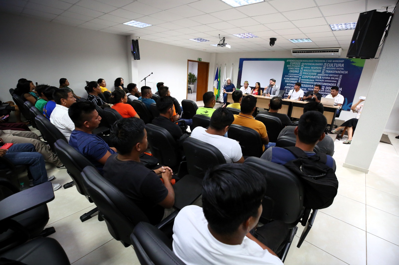 A Escola Superior da Magistratura Tocantinense (Esmat) recebeu, na tarde desta quarta-feira (15/1), alunos(as) do curso de Licenciatura Intercultural Indígena da Universidade Federal do Tocantins (UFT). A graduação atende a uma antiga demanda dos povos indígenas por formação docente superior e faz parte do Programa Nacional de Fomento à Equidade na Formação de Professores da Educação Básica – Parfor Equidade.