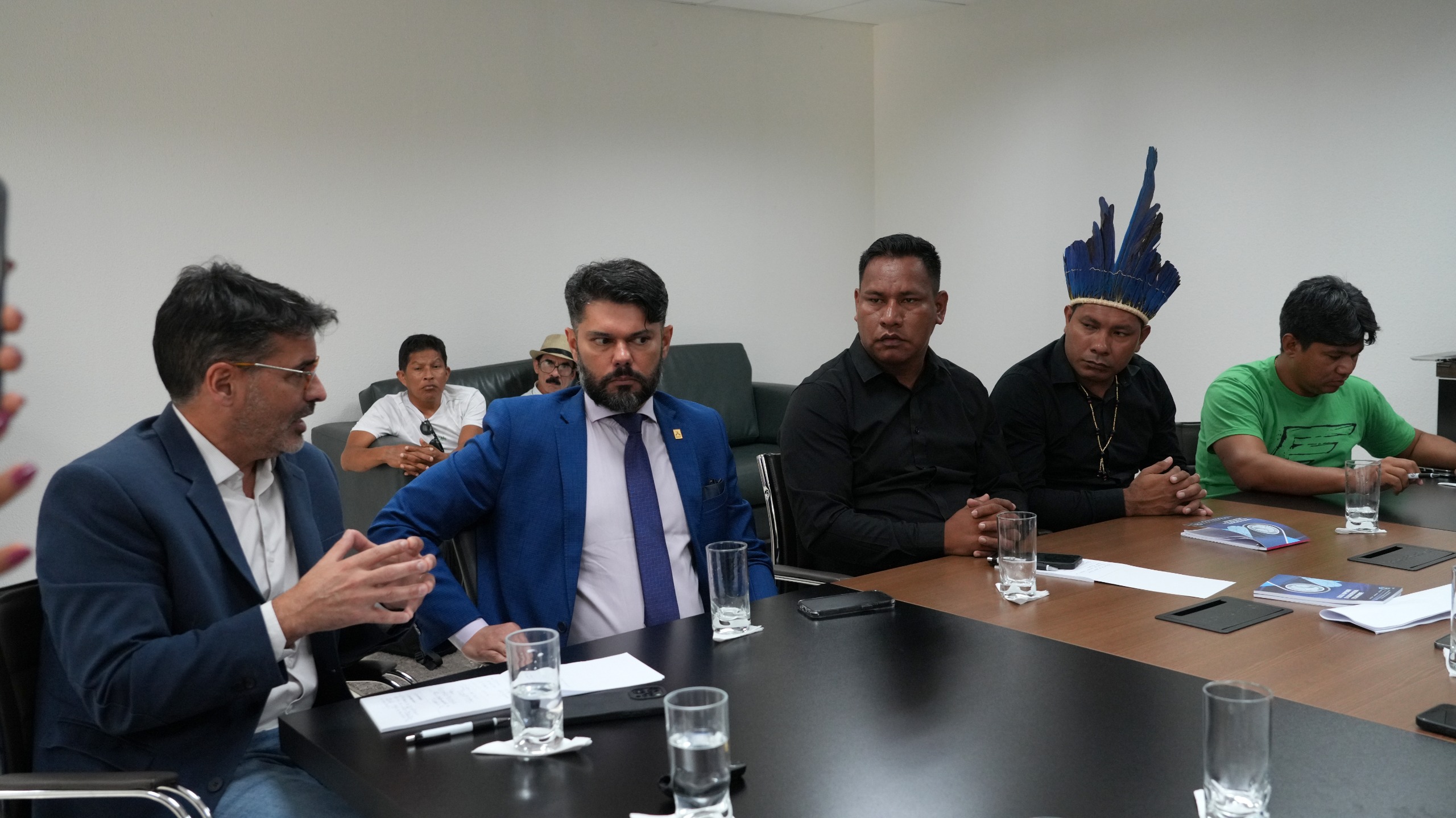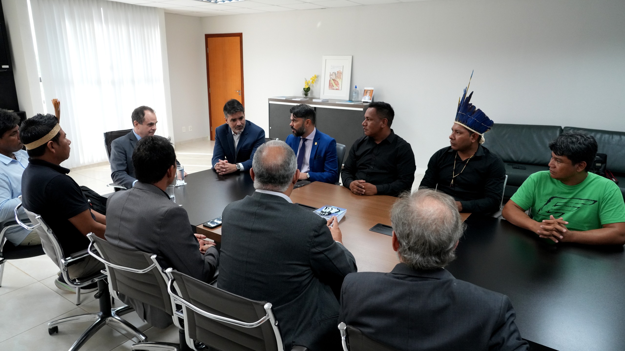 Com a proposta de debater a questão socioambiental do Tocantins, com valorização dos povos originários e tradicionais, a Escola Superior da Magistratura Tocantinense (Esmat) sediou, nesta segunda-feira (10/3), uma reunião com lideranças indígenas eleitas no último pleito eleitoral, representantes do Ministério Público Federal (MPF), Fundação Nacional dos Povos Indígenas (Funai), Secretaria de Estado do Meio Ambiente e Recursos Hídricos (Semarh) e Secretaria dos Povos Originários do Tocantins (Sepot). O objetivo central do encontro foi promover um diálogo sobre os desafios enfrentados pelas lideranças indígenas, buscar soluções conjuntas para fortalecer a representatividade e a defesa dos direitos dos povos originários no Estado, e aprofundar a discussão sobre a implementação de mosaicos socioambientais indígenas.