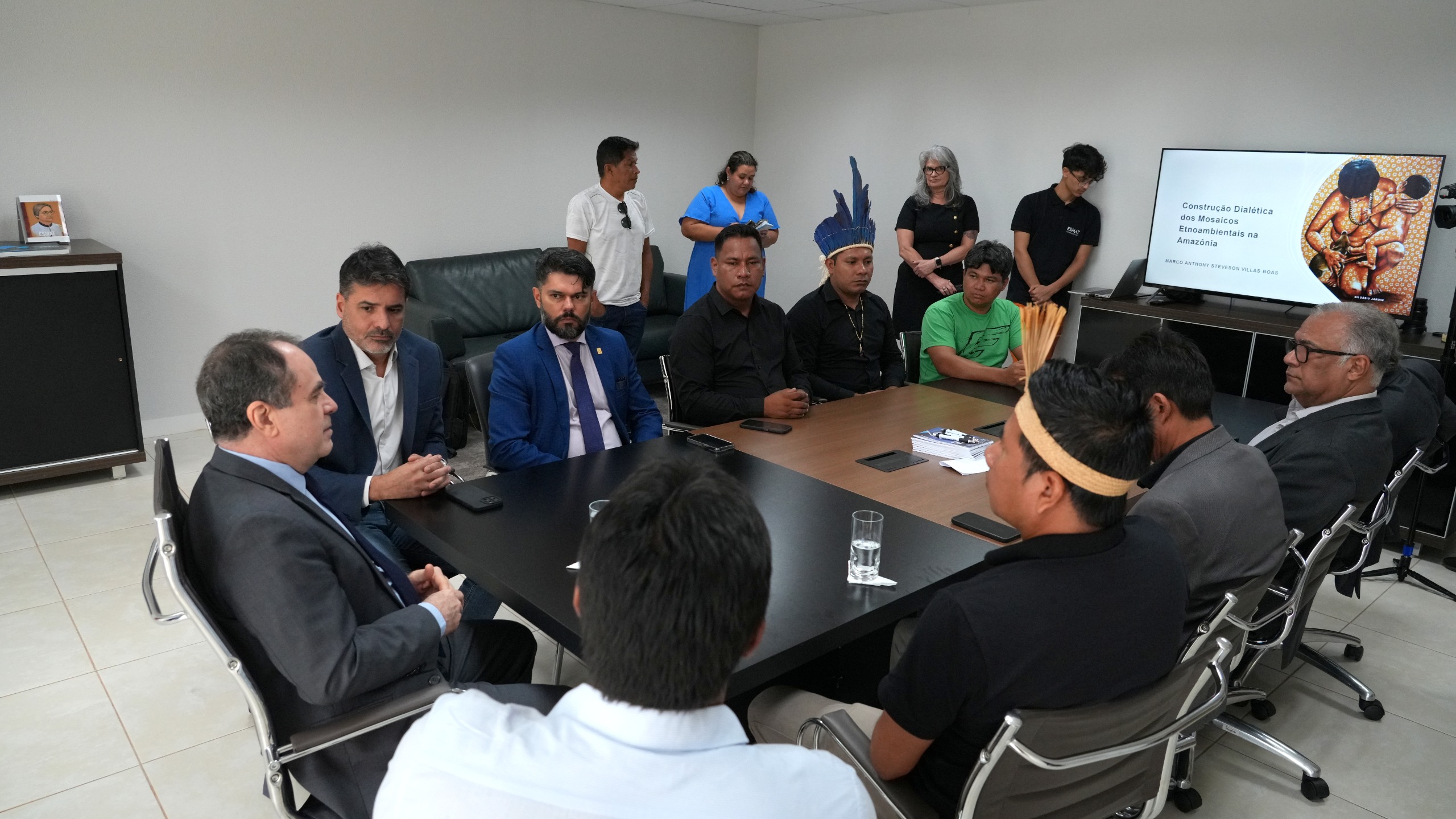 Presidida a reunião pelo desembargador Marco Villas Boas, diretor geral da Esmat, foi proposto um debate interinstitucional, interdisciplinar e intercultural com vista a uma possível implementação de um mosaico socioambiental com o objetivo geral de promover a gestão integrada e participativa de territórios, reconhecendo e valorizando os conhecimentos tradicionais dos povos indígenas na conservação ambiental e no desenvolvimento sustentável.