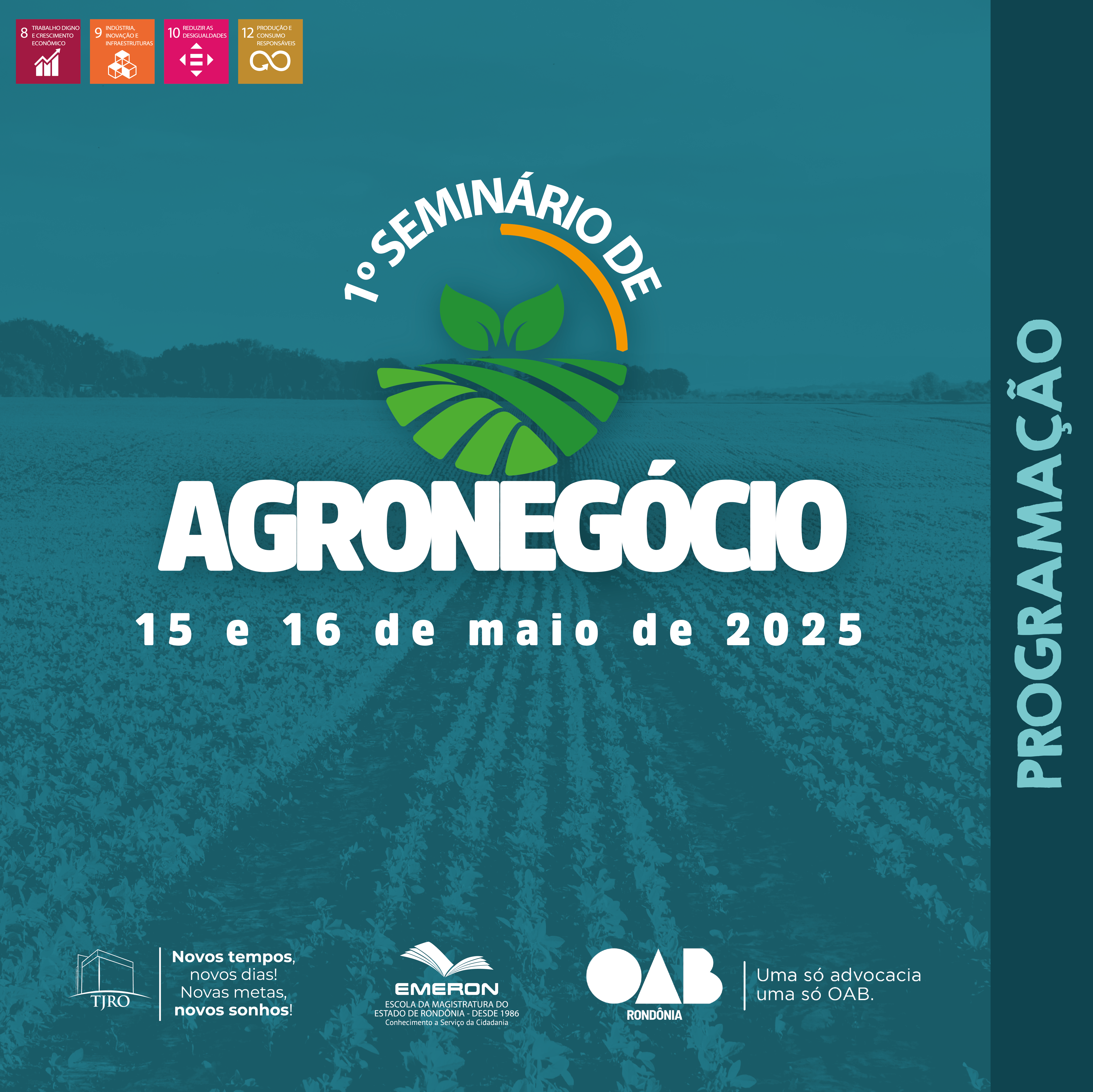 A Escola da Magistratura do Estado de Rondônia (Emeron), em parceria com o Tribunal de Justiça de Rondônia (TJRO), promove nos dias 15 e 16 de maio o 1º Seminário de Agronegócio do Judiciário, no auditório do TJRO, em Porto Velho. O evento visa fomentar o debate qualificado sobre os desafios jurídicos, contratuais e ambientais do agronegócio, com enfoque na sustentabilidade e na segurança jurídica das relações no setor.
