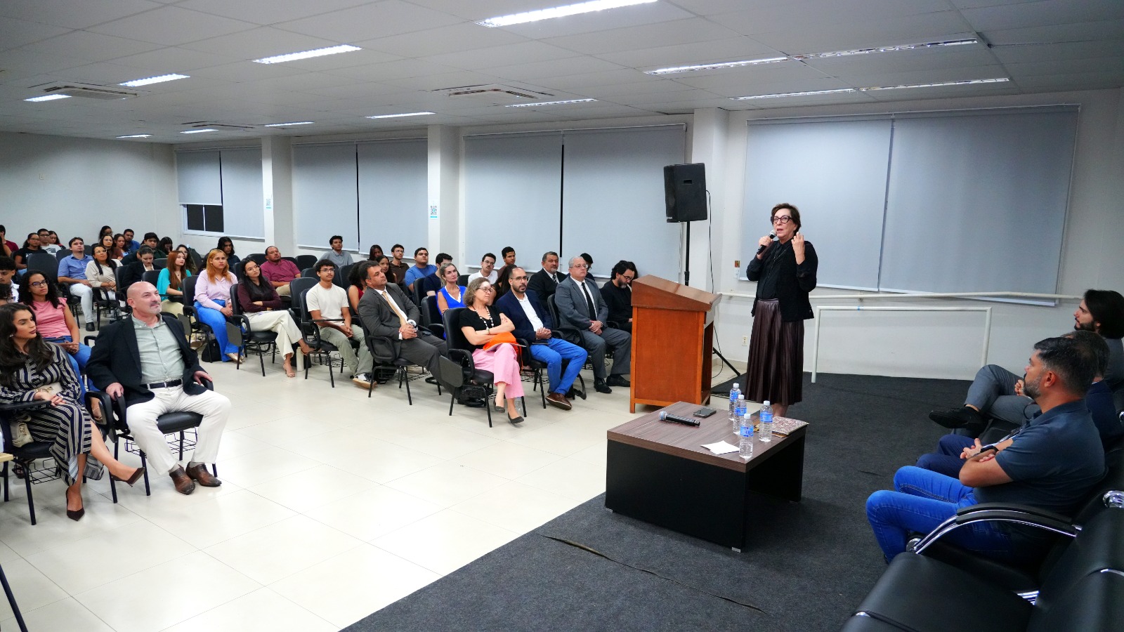 O Curso de Direito da Universidade Federal do Tocantins (UFT), câmpus Palmas, abriu o semestre com a Aula Magna “Inteligência Artificial no Direito: aplicações práticas e desafios éticos”, realizada na última sexta-feira, 29 de agosto, no auditório da Reitoria. A Mesa reuniu os professores doutores Marco Villas Boas, Ângela Issa Haonat e Wellington Magalhães e lotou o auditório da Reitoria com acadêmicos(as) da UFT.