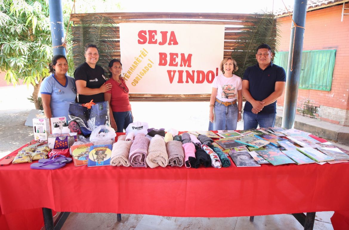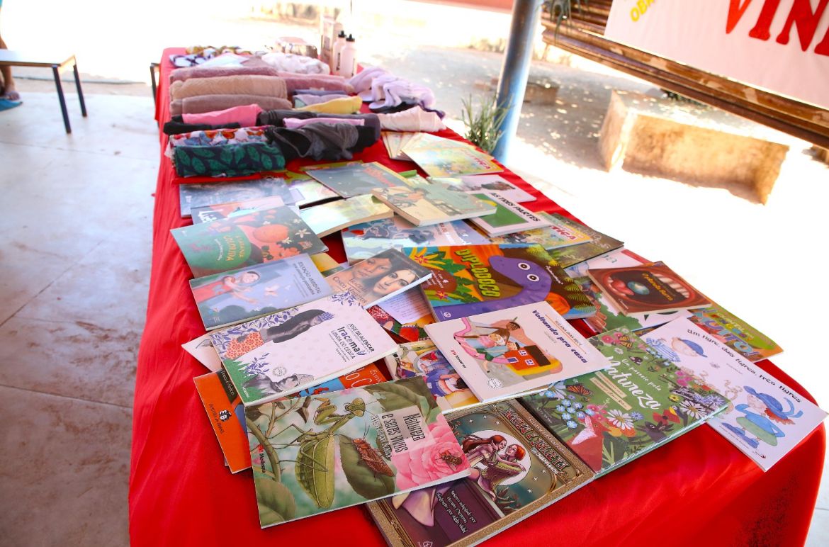 Além dos livros, a Esmat também doou um aparelho de ar-condicionado em bom estado para a biblioteca, ampliando o conforto do espaço de leitura. Durante o evento, foram entregues aos(às) estudantes itens como roupas, bonés e produtos de higiene pessoal.